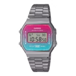اگر به دنبال ساعتی هستید که در عین ظاهر کلاسیک و جذاب، امکانات مدرن را هم داشته باشد، مدل A168WERB‑2ADF یکی از بهترین انتخاب‌هاست. این ساعت از سری Vintage کاسیو، با صفحه‌ای دارای گرادیان رنگ (آبی به صورتی) و بدنه استیل خاکستری تیره، جلوه‌ای خاص و چشم‌نواز دارد.