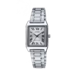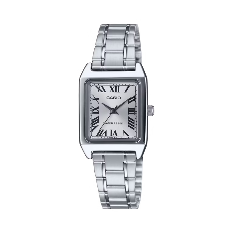یک ساعت کلاسیک با ظاهری ظریف و لوکس برای بانوانی که ظاهر رسمی و مینیمالیستی را دوست دارند؛ طراحی مستطیلی شیک، بند استیل نقرهای و صفحهی آنالوگ با سه عقربه، ترکیبی است که زیبایی و سادگی را در کنار هم دارد.