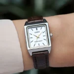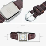یک ساعت کلاسیک، ظریف و شیک با الهام از طراحی «Tank» که برای خانمها و کسانی که ابعاد کوچک و سبک را دوست دارند، گزینهای عالی است. طراحی مینیمال، بند چرم و قاب نقرهای باعث شده این مدل هم برای تیپ رسمی مناسب باشد و هم برای استفاده روزمره.